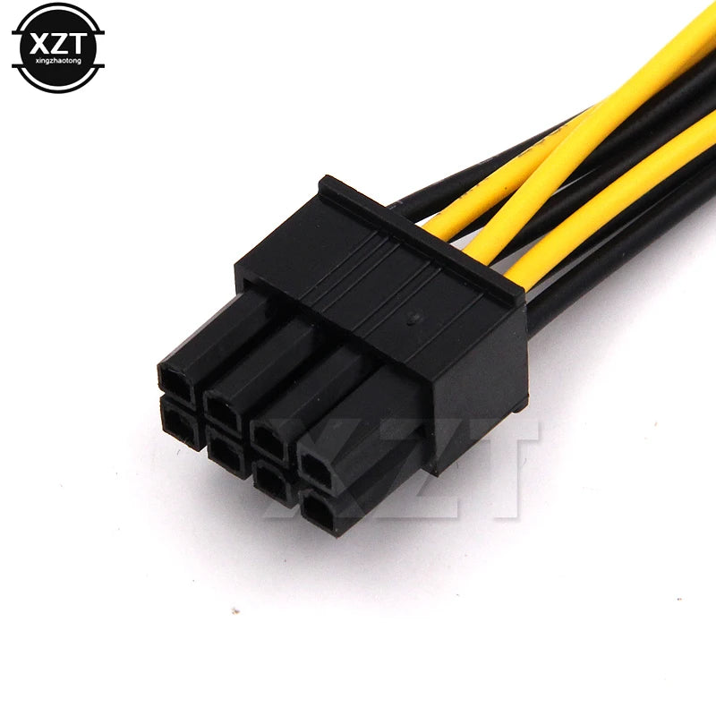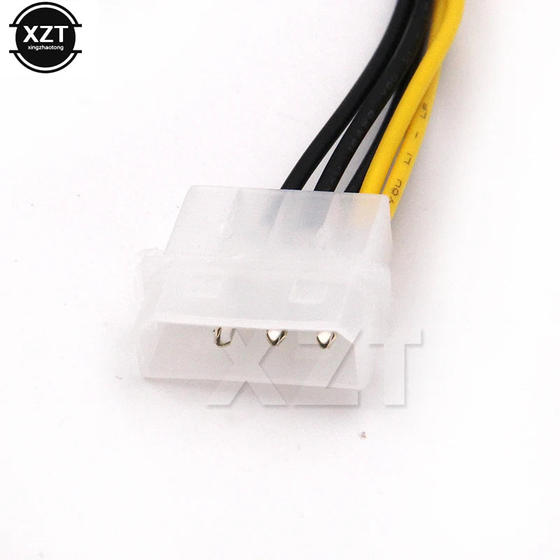 Combines two 4-pin Molex LP4 PC power supply connectors into one 8-pin PCI Express graphics card auxiliary power connector