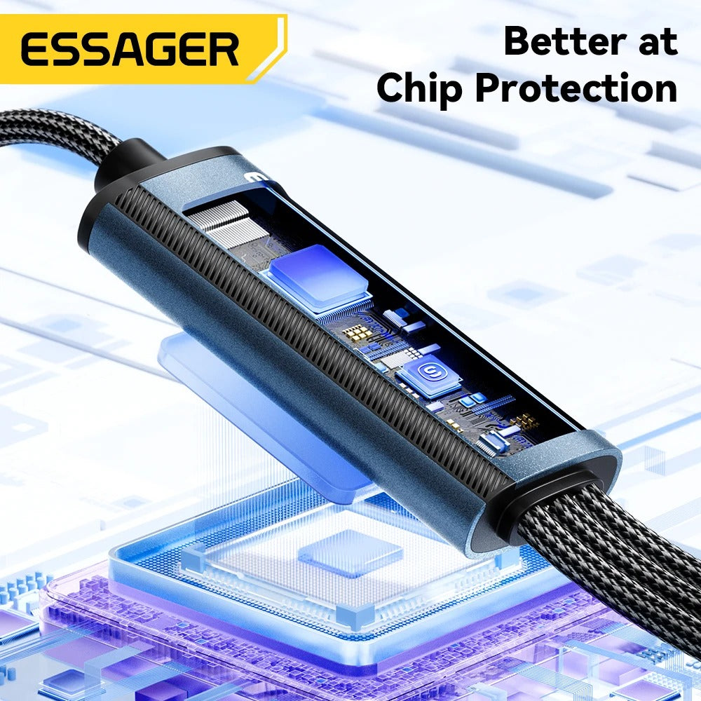 Tired of carrying a tangle of cables for all your gadgets? Our Essager 100W 3-in-1 Fast Charging Cable is here to simplify your life. This ultimate quick-charging cord features USB-A to a trio of connections: Type-C (up to 100W/7A), Lightning (2.4A), and Micro USB (2A).