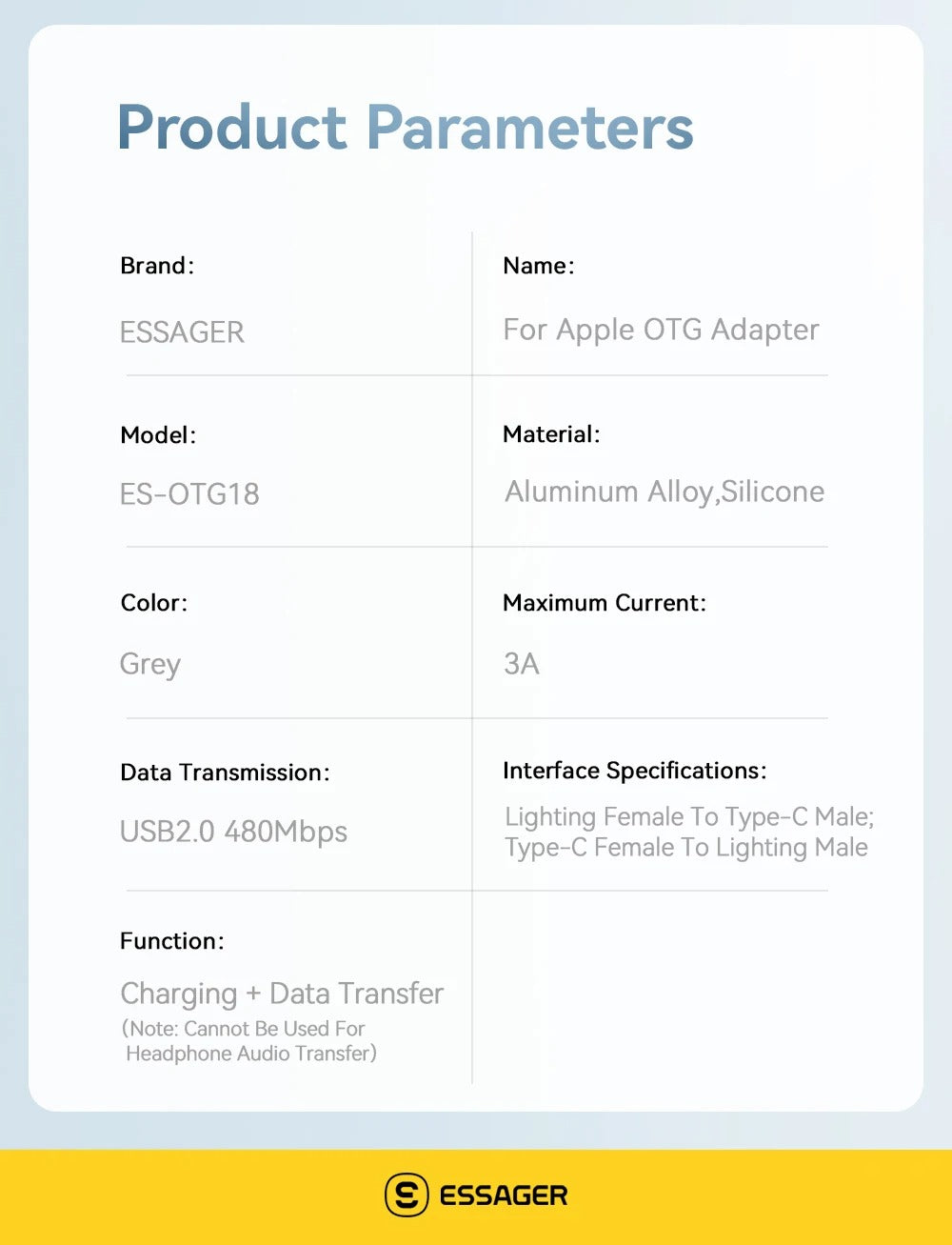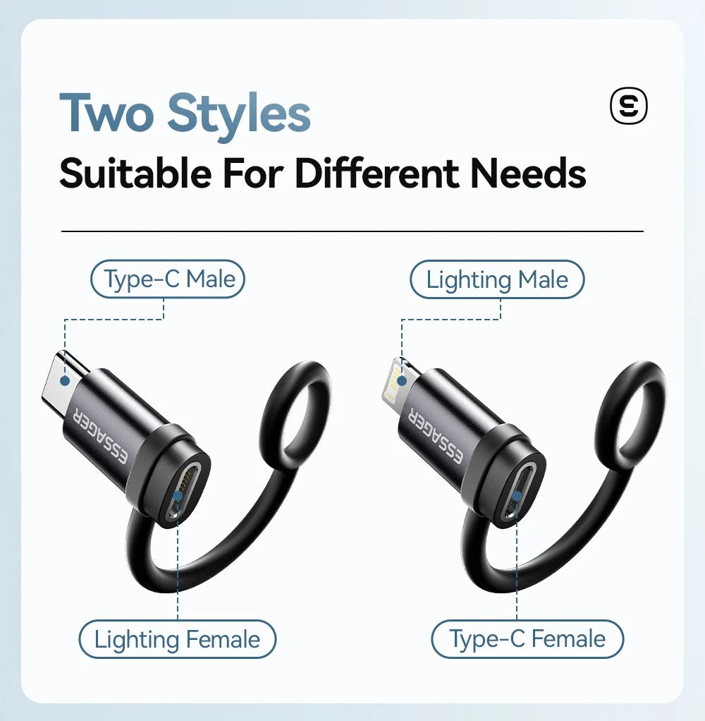 Say goodbye to tangled cables and mis-matched ports with our versatile Essager Lightning to Type-C and Type-C to Lightning adapters. These small but mighty converters are designed to bridge the gap between your devices, allowing you to use your existing cables for fast charging and data transfer. The ultimate for seamless connectivity.